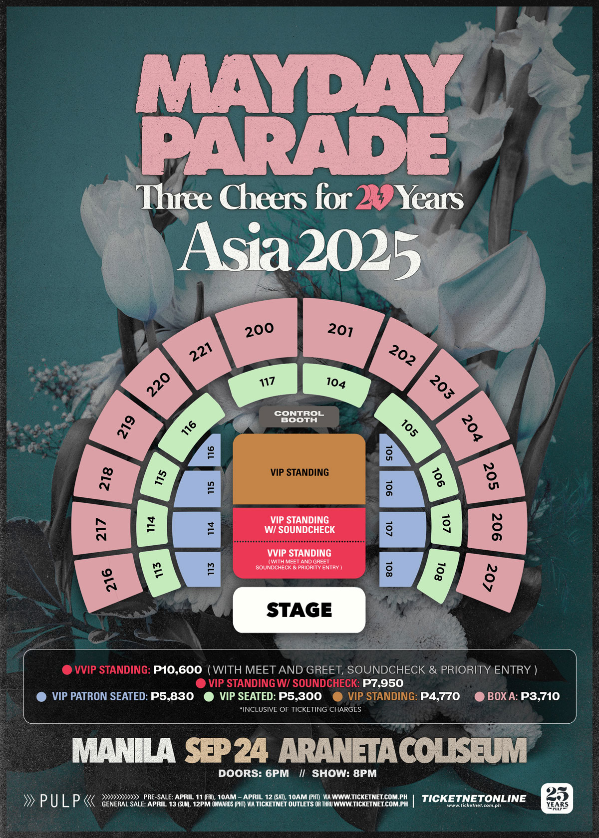 - VVIP Standing (with Meet&Greet, Soundcheck, & Priority Entry) —Php10,600