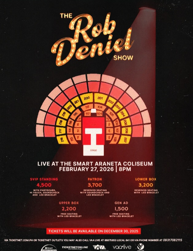 Experience an unforgettable night with one of today’s most relatable OPM artists as Rob Deniel takes the Big Dome for The Rob Deniel Show. Known for his honest storytelling and emotional songwriting, Rob Deniel rose to fame through viral hits and fan-favorite tracks such as “Ulap,” “RomCom,” “Sinta,” “Miss Miss,” and “Ang Pag-ibig.”