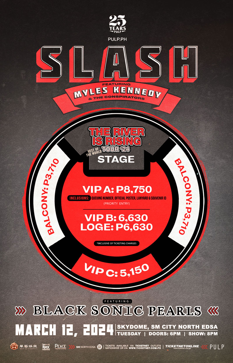Of course, when the news was first announced via social media that Slash featuring Myles Kennedy & The Conspirators were returning to Manila, an almost-immediate frenzy among Filipino music fans broke-out online. Having since rejoined Guns N’ Roses and playing venues worldwide for the past few years, Slash has since reclaimed his throne as the greatest, and most important guitarists of all time. So fans can definitely expect another explosive, high-voltage true-to-the-bone hard rock show next year, so save the date and buy your tickets now!