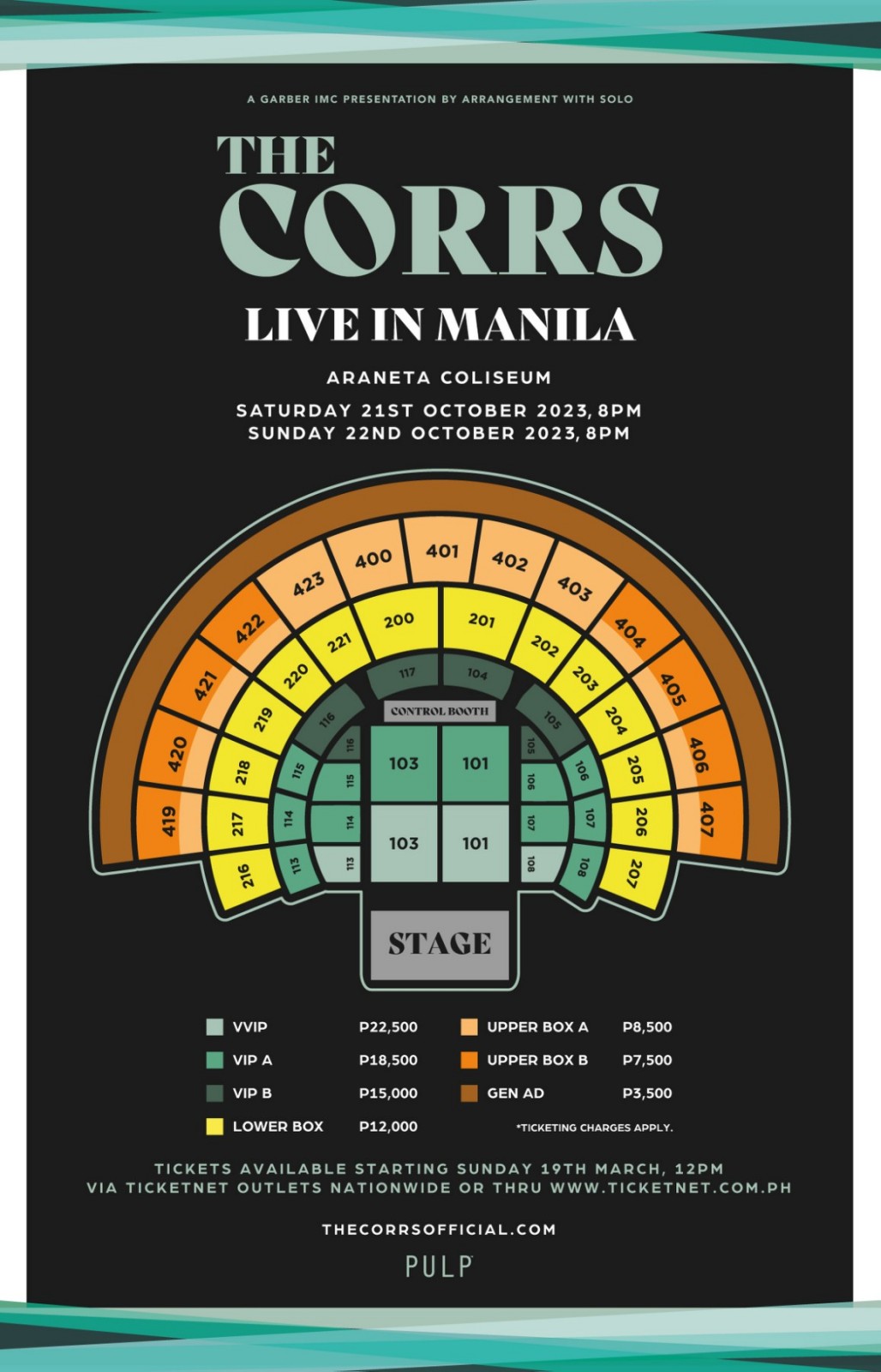 Tickets to The Corrs Live in Manila go on sale starting March 19th, 2023 at 12 NN, and will be available at all Ticketnet outlets nationwide and online via www.ticketnet.com.ph. This show is proudly presented by PULP Live World.